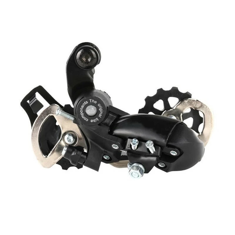 Le dérailleur arrière de vélo de montagne est compatible pour les groupes motopropulseurs à 6, 7 et 8 vitesses. Un contrôle de mouvement léger et des poulies surdimensionnées sont fournis pour que vous puissiez choisir parmi une variété de positions de vitesse. Le ressort de tension et le bus de pivot de bielle revêtu de fluor à faible friction conduisent à légère action de commutation.