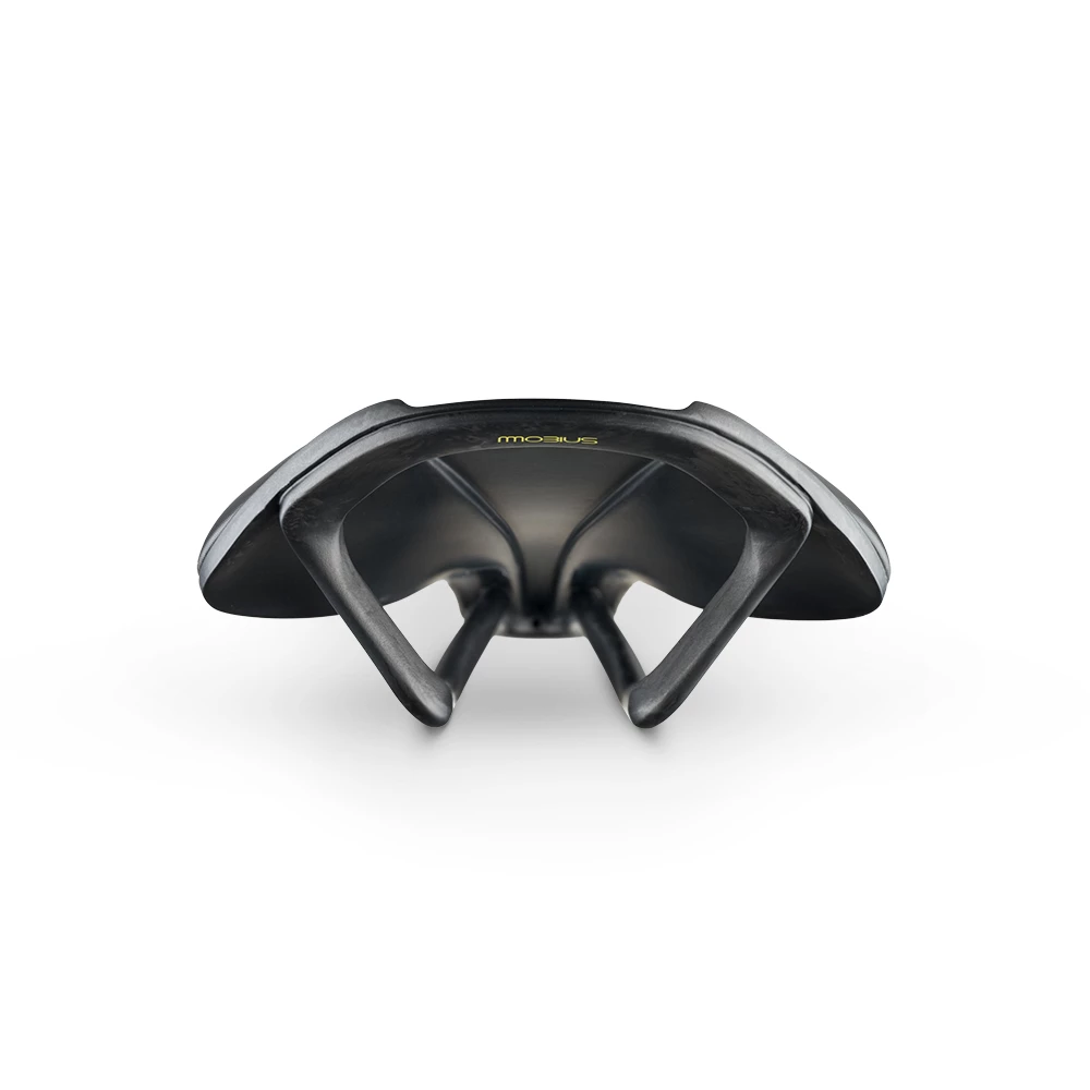 Une selle de vélo de route entièrement en carbone avec des rails en carbone Mobius, une conception en boucle fermée pour une répartition équilibrée du poids et une coque entièrement en carbone à module élevé pour une rigidité ultime et un poids léger.
