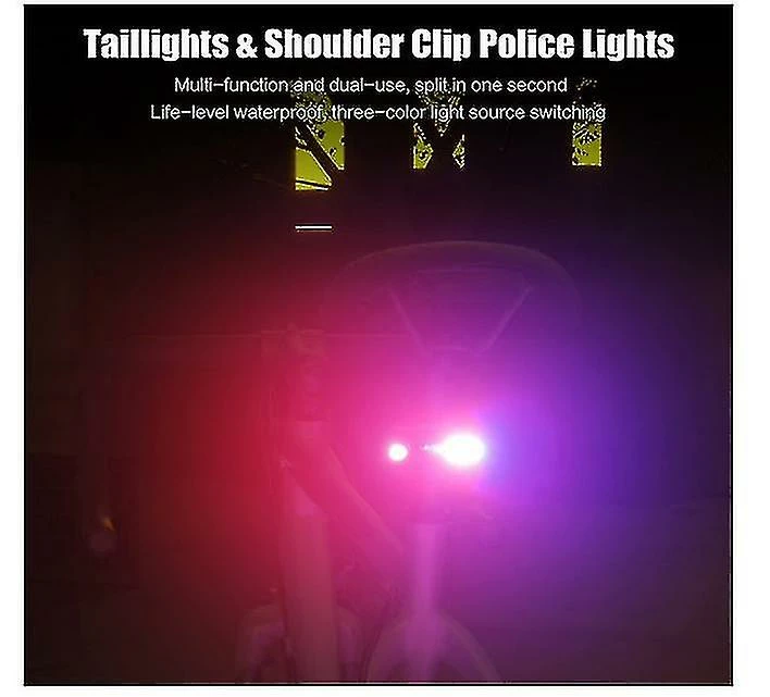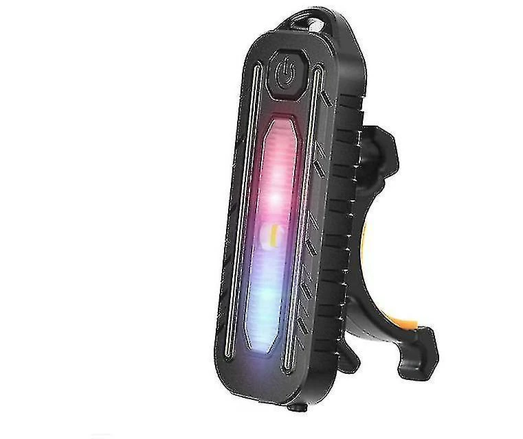 Five Lighting ModesPress the button to switch the mode to 100% strong light, 50% weak light, Red and blue flashing alternately, 100% COB strong light, 50% COB weak light to meet your different lighting needs. cycling.Rechargeable by USB Charging time 4 hours; time available 6 hours or more. Long time use, fast charging, just connect the bike light to any USB device such as power bank, car charger or AC outlet adapter. (please fully charge it before first use when you receive the light.)WaterproofSmall size and ultra light dual use lamp, take it with you, for waist and shoulder, etc. suitable for various harsh environments waterproof.Suitable for all bikesThis rechargeable bike light installs in seconds without tools for all types of bikes, road bike, mountain bike, hybrid and can also be used as a helmet light, backpack light, wheelchair lamp, scooter lamp and warning lamp.Package Information1 x Tail Light, 1 x Bracket, 1 x Fixed Strap, 1 x USB Cable, 1 x User Manual.