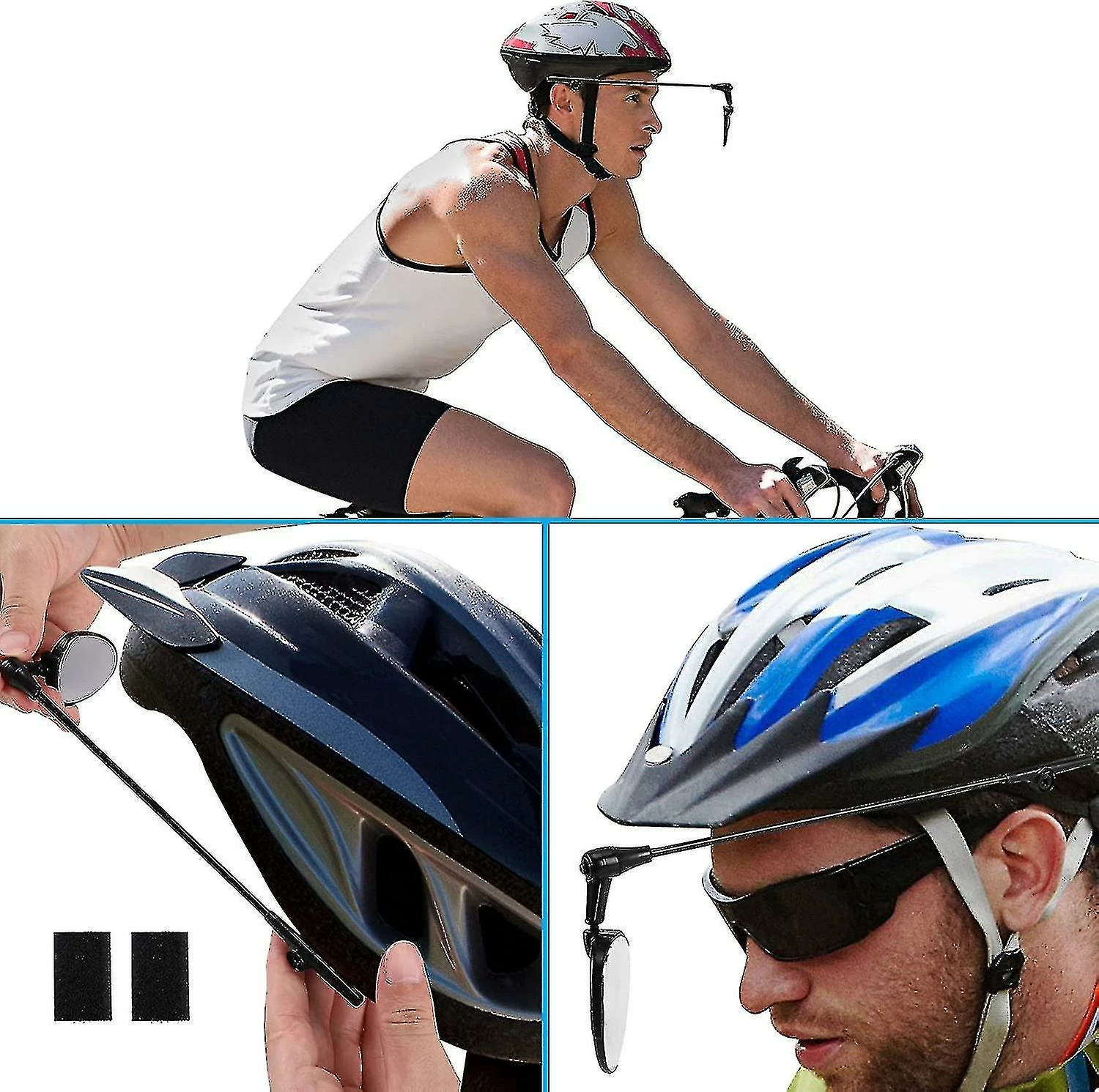 Youngcome 2 Pack Casque De Vélo Miroir, 360 Degrés Réglable Vélo Léger Cyclisme Casque De Recul Miroir Pour Cyclisme, Accessoires De Cyclisme